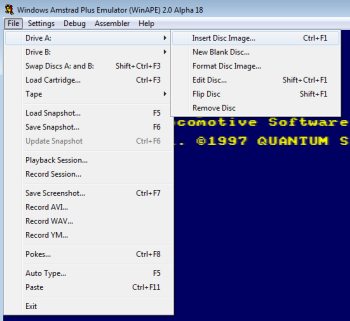 Uruchomienie gry w emulatorze WinAPE jest bardzo proste i nie wymaga skomplikowanych czynności. Po ściągnięciu emulatora i jego wypakowaniu uruchamiamy go. Z menu File wybieramy Drive A: -> Insert Disc Image…