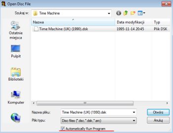 Wskazujemy plik z grą (wcześniej wypakowaną) i ważne jest aby zaznaczyć opcję Automatically Run Program tak jak na poniższym obrazku.