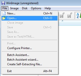 Niestety nie ma prostej metody na wprowadzenie plików do wirtualnego systemu, dlatego też będziemy musieli edytować obraz dysku c: i przekopiować do niego instalkę systemu Windows 98, do tego celu użyjemy program WinImage, który należy zainstalować i uruchomić.
