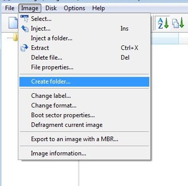 Z menu Image, wybieramy Create Folder…, wpisujemy nową nazwę katalogu - Win98 i klikamy OK.