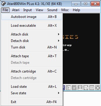 Aby uruchomić grę należy ją wypakować, gry powinny być zapisane w plikach o rozszerzeniu m.i. ATR, XEX. Z menu File wybieramy Autoboot image… i wskazujemy na plik z grą i klikamy Otwórz i gra automatycznie się uruchomi.
