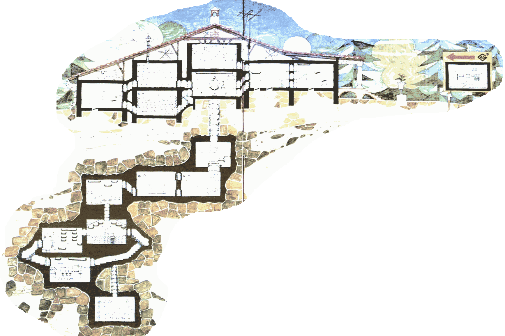 Po wzięciu kluczy z komnat 6,7 i 8 wejdziesz znowu do piątej i tu czeka cię niespodzianka. Otworzy się obrazek i ukazując tajne wejście do piwnic. Tu pozbieraj najpierw klucze z komnat 10 i 11, potem wróć do komnaty 10, zejdź na dół i idź dalej. W komnacie 12 uważaj na ptaszki.